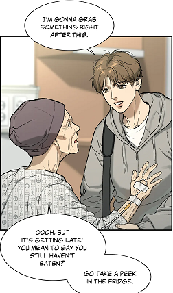 (chapter 60) , though there is no doubt that the doctor is still in love with him. At the hospice, this mistrust resurfaces. The parallel conversations—in the locker room and the emergency room—highlight the ongoing cycle of miscommunication and emotional disconnect. Both characters, in their own way, lie to themselves and each other. Joo Jaekyung sees Kim Dan through the lens of poverty and greed
