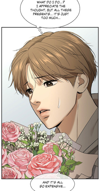 (chapter 41) He bought it during his trip to the States. Interesting is that the young man chose not to bring pink roses to his grandmother. Why has he never brought flowers to his halmeoni? Chapter 31 gives us the answer: