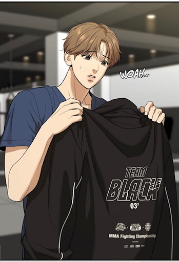 (chapter 22)This signifies that he is trying to get famous on Joo Jaekyung’s back. By not adding his name or his nickname on his back, he is claiming the fighter as his “fighter” and member. He is trying to claim that only thanks to him, the athlete could reach the top. In addition, when the manager gave the jacket to the celebrity, he had just selected one of them based on his size and nothing more.