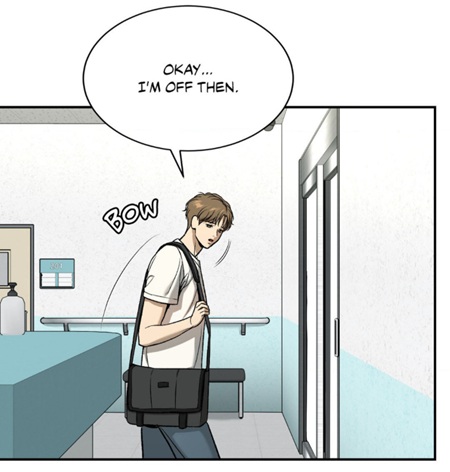 (chapter 19) This comparison outlines the PT’s metamorphosis. Not only his perception of Joo Jaekyung changed, but also he has become a responsible and dedicated physical therapist. He defines himself as a PT too. Hence he didn’t leave a mess behind with the files (chapter 53). His decision exposes that this was not an escape.
