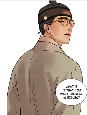 According to the main lead, only his grand-father had a government post. (chapter 7) Then in the study, Yoon Seungho confessed that his father had been dismissed from his post which contradicts the previous statement. (chapter 80) But how did Yoon Chang-Hyeon obtain his office then? Then the expression “follow in his footsteps” caught my attention. That’s how I realized that the elder master never passed the civil service examination!! In truth, he failed terribly. How can I be so sure about this? First, the civil service examination consists of different tests. Secondly the idiom from Yoon Seungho indicates an gradual rise in the grandfather’s career which is not reflected in the lord’s confession to the messenger. Finally, in front of the mirror of truth, the father voiced the following wish: (chapter 86) This expectation exposes that this had not happened in the past. But why didn’t he expect this from Yoon Seungho earlier, though the latter had such a good notoriety? It is because he desired to be admired himself. He viewed himself as the Yoons. Thus he said this to his son: (chapter 86) This means that he was using his own sons for his own career, though he claims that he is doing for the Yoons’ notoriety. In other words, the patriarch’s position was obtained through sexual favors. But since the king was the sponsor, there is no ambiguity that at some point, the elder master must have started dreaming even bigger, similar to the scholar: (chapter 18) Hence I have the impression that he must have acted, as if he was the king’s relative. Hence he asked to be called by a certain title. This could only infuriate the mysterious lord Song, for the latter was hiding his sodomy and debauchery behind closed doors. No one was supposed to make a connection between him and the Yoons. However, I don’t think that the elder master Yoon had planned everything from the start. He had definitely been misguided, for in season 1 and 3, we could see that he was believing blindly what people would say to him. He never doubted his son’s words, when the latter said that Yoon Seungho had given him such a paper. (chapter 44) And it is the same with father Lee. That’s the reason why I still think that he had been manipulated. He was pushed to sell his own son, thinking that the Yoons would benefit from it. However, this was just a delusion, as he was dependent on the monarch’s benevolence.