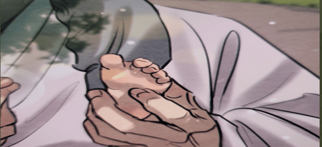 But while he rushed to the lord’s side, he tripped and fell on his hand. (chapter 105) But the latter acted, as if his hand was not wounded. (chapter 105) He ignored his physical pain and heartache. (chapter 105) This is important, because the stumbling symbolizes the intervention of the gods… We have the perfect example at the end of season 3. The lord fell on his knees in front of the scholar’s house, hence there is a hand print on the snow. (chapter 100) That’s how he refused to view Lee Jihwa as the murderer of his lover, Baek Na-Kyum”. YES, the falling is the real manifestation of CHANCE! How so? I would like the manhwaphiles to keep in mind that chance is the antonym of trick and scheme! The latter are connected to plan and organization. Thus I come to the conclusion that the noble will decide to go to the doctor’s office in order to treat his lover’s hand. (chapter 105) Let’s not forget that Yoon Seungho treasures the artist’s hands so much. Besides, they are wearing the same scarfs than in episode 74. But this is something that the schemers are not expecting. After the start of season 4, I got aware that Yoon Seungho never saw the doctor clearly. When the main lead was brought there, (chapter 57) he was feverish so that he couldn’t pay attention to the physician. Besides, the man never remained by his side. Finally, in episode 74, the man never left the office!! (chapter 74) I conclude that Yoon Seungho never saw the physician for commoners! Besides, I doubt that he remembers him from his childhood. But this is not the same, when Baek Na-Kyum was ill. He met the other doctor twice. (chapter 33) (chapter 103) On the other hand, the artist assumes that the man in the office is Yoon Seungho’s doctor!! He heard his confession: (chapter 57) There exist two physicians in the city at least. That’s how a part of the truth will come to the surface! And who had fetched the doctor? (chapter 103) The staff… I would like to outline that in this panel, Kim was no longer seen next to the couple. (chapter 105), though he was still present here. (chapter 105) So where did he vanish? Probably to the mansion, for he had to warn the domestics that the artist would be returning! But if he left the couple behind, this means that he can’t witness what Yoon Seungho and Baek Na-Kyum will do next. And if they don’t go to the doctor, there is no ambiguity that the main lead will send for the doctor again. But according to me, the man disappeared. (chapter 103) To conclude, I am expecting that Yoon Seungho will make a huge discovery in the next episode… just like the painter did in the gibang.