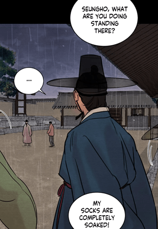 Now, people who haven’t read “A painter behind the curtain” might think that Yoon Seungho is the Joseon version of Bardi, however they are wrong. Actually, he is a mixture of Bardi (due to his selfish and violent side) and Mr. Raymond. If you look at the image where Mr. Raymond is looking at the painting, you’ll notice his fascination and admiration for the work created by Ian.