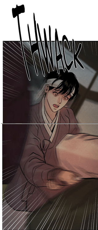 (Chapter 101) In the shaman‘s house, he was not beaten to death, but stabbed to death. This was the usual punishment for a noble. The irony is that because the painter was unconscious, he couldn’t stop Yoon Seungho. The latter let his body take the lead and committed murder. He couldn’t act differently, as he had lost his reason to live. The main lead had once again confused the mind and the heart. This explicates why he couldn’t detect that the painter was just unconscious. And that‘s how Min became a spirit.