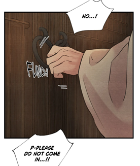 Yoon Seungho catches the low-born, because he wants him to experience sex. He has noticed the reluctance hence he just masturbates the young man. Striking is that the door is opened at some point by a servant. This opening of the door by someone else embodies the fear of being discovered. Baek Na-Kyum is determined to never reveal his repressed sexual desires. Consequently he wants the door to stay closed. So if he is seen then, he fears that his sexual orientation will be discovered, yet he wants it to remain a secret. Now, you can understand the meaning of the door in chapter 37.
