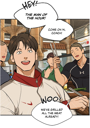(chapter 22), because the latter was somehow neglected by the champion. They were compensating for the lack of interest from the captain. Interesting is that no one was missing Potato during that day and party except the readers. Why? It is because little by little, his adoration for the champion is vanishing. He is starting to have a life on his own. It is important, because Kim Dan could receive now more attention from the members than before, especially because he is receiving the good grace from his boss. Don’t forget that Park Namwook never protected them from his bad mood.