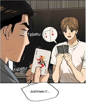 (chapter 25) On the other hand, Yoon-Gu lacks experiences, for he has never been exposed to the cruelty of this world, unlike Kim Dan or Joo Jaekyung. His fighting spirit is not developed yet.