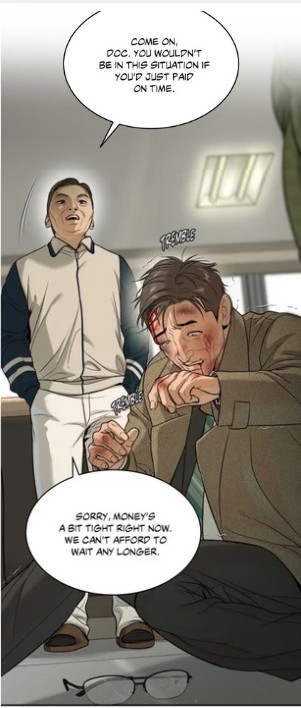 (chapter 93) Choi Gilseok, Heo Manwook and his minions are not behaving like investigators at all. No one is collecting new information. No one is analyzing evidence. Instead, the conversation revolves around debts, payments, and damage control. The supposed detective agency suddenly looks much closer to what it truly is: a loan shark operation that had previously hidden behind the façade of investigation.