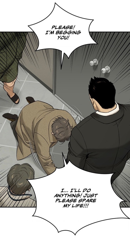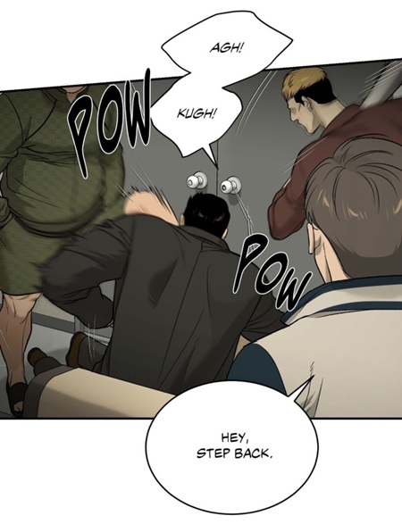 (chapter 46) In chapter 46, he was already acting behind the back of that parent company, manipulating events to influence the outcome of the fight. Later developments—such as the conversation at the café with Kim Dan and the suspicious use of the spray—suggest that he may eventually have received support from that higher structure.