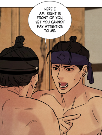 (chapter 44) It is because the main lead was thinking that the painter would actually run away. Thus the door was left opened, and he was wearing warm clothes. Yoon Seungho never imagined that Baek Na-Kyum would remain by his side. Yet, during the previous night, the lord had consoled his lover by embracing him.