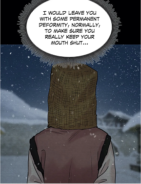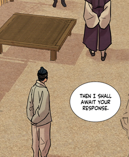 (chapter 123) Why? It is because he feels, he is the one with the upper hand. First, he has the petition, hence he is already projecting himself in the future (he can get a high position again). Secondly, he thinks, Yoon Seungho is outnumbered. He is surrounded by 4 guards. But more importantly, he views himself superior to the main character due to his age. He is an elder. That’s the reason why he calls “my dear boy”. This implies that he is underestimating the main figure. The latter would never dare to raise his hand against a senior!! However, true justice is also blind to age.