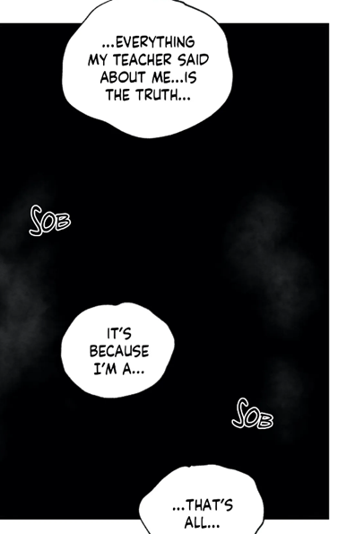 of season 4 for this essay, though my focus is the past, and more precisely Yoon Seungho’s suffering. It is because the darkness surrounding the protagonist not only refers to his tragic youth, but also it reflects the situation of the manhwalovers. The latter are still in the dark concerning his torment. His terrible secrets have not been totally unveiled. So far, the author allowed the readers to see glimpses of his past, like f. ex. the gangrape or the suicide of his mother. But these were just small pieces of the puzzle, thus it is still impossible to have a complete picture of his martyrdom. There are many reasons for this. The main victim never testified about his suffering, he refused to open up to Baek Na-Kyum.