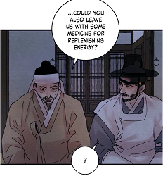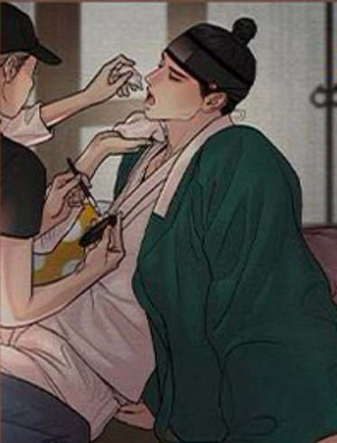 (chapter 77) Kim calls the drug “medicinal tea”, truly an euphemism. It is also possible that the real target of the poisoning was Yoon Seungho, but since he was protected by the gods, someone ended up taking the “drug”. Because he was wearing a purple hanbok, the investigator mistook his identity, a royal member. Hence the Yoons were suspected of treason. Don’t forget that during this party, there was a kisaeng by their side.