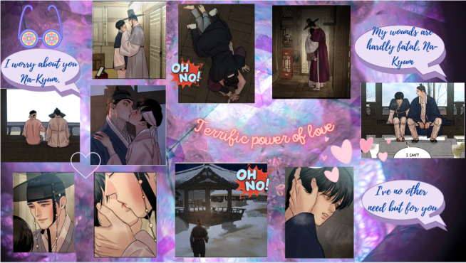 (chapter 126) This humiliation made Yoon Seungho realize that he needed to have his power on his own. He learned through the hard way that he was not just a Yoon, but Seungho. Yes, this helped him to differentiate himself from his father and to become stronger mentally. His religion was now his lover, Baek Na-Kyum, whom he needed to protect. But he could only do it, if he had himself a powerful position. But he needed to witness the corruption of the authorities to realize that in Joseon, there exists no justice.