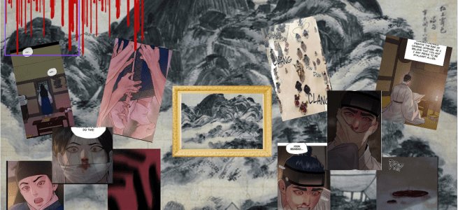(chapter 54) But the readers should question themselves this: why did Kim dress like this in the first place? From my point of view, the schemers have already planned to frame Baek Na-Kyum for the murder of the nobles and even of Jung In-Hun. Kim is trying to separate the couple so that the artist can be arrested easily and sentenced immediately. By burning the place, the evidence that Baek Na-Kyum was a victim vanished. That’s how they can manage to turn a victim into a perpetrator. They wanted to erase every trace of the crimes, but then the return of the painter will force them to change their plan. The fire can help them to turn Baek Na-Kyum into a scapegoat. That’s the reason why the anonymous shadow is wearing clothes similar to the painter’s. No one should recognize him. Later, Baek Na-Kyum can be “identified” as the culprit. And any blood trace on his clothes could serve to incriminate the painter. They could use the resemblance of the clothes as a proof for his crime. That’s the reason why lord Shin had to die in the end. And if lord Shin never doubted this person, I am suspecting that the latter is working with the authorities. Kim is not the only suspect, for according to me, there always exist a conspiracy of 3 and even 5 people. This observation leads me to create a list of suspects. First of all, Yoon Seungho’s confession to the learned sir should help us to determine the schemers and culprits.