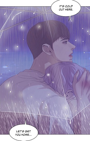 He shows no respect to social norms with his actions giving the impression that he is living like an animal. He even instills a certain fear due to his ruthlessness, very similar to the Beast. Besides he’s also very rich and lives alone in his mansion, another common denominator with the main lead from that fairy tale. I am not counting the staff because the lord never pays attention to them. He’s also older than Baek Na-Kyum who has just become an adult. Furthermore, since Yoon Seungho has a very traumatic past which is somehow very similar to a curse, he can no longer live normally. Until the chapter 49, he considered himself just as a spirit. And as time passes on, he shows more and more kindness towards Baek Na-Kyum, thereby even the painter starts noticing it.