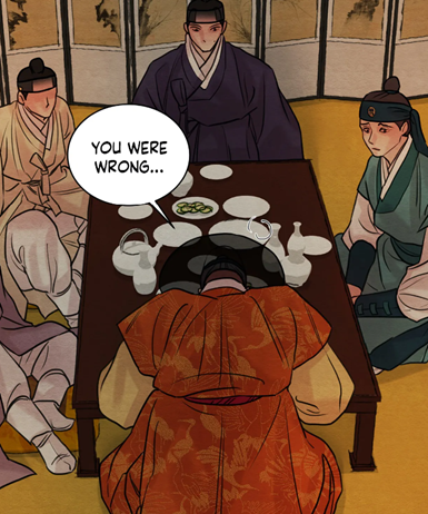 Since the chapter 66 stands in opposition to the episodes 53/54, it becomes obvious that the main lead will react differently. He won’t act on his emotions, he learned his lesson due to the painter. He punished the commoner, although the latter was innocent, too blinded by his rage and pain. That’s why I think, we should consider the chapter 66 as Min’s ultimate defeat.