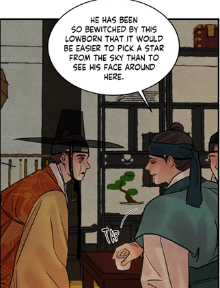 (chapter 8), the aristocrat imagined that he could get the same gaze, if he had sex with the painter. And that’s how the love triangle started. He wished to be gazed like Yoon Seungho was.