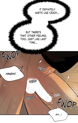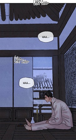 before “destroying” the painter with sex. That’s why I view this panel as a parallel to the one where the painter was screaming Yoon Seungho’s name.