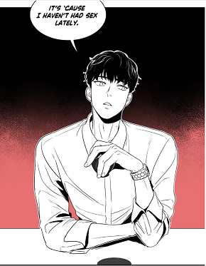 (chapter 41) Not only he showed his desire to submit Yoon Seungho, but also he acted, as if he was superior to him. He asked questions and even criticized the main character for his behavior: he was creating a ruckus, exposing his hypocrisy, as Black Heart loves uproar.