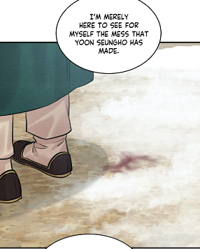 He says the exact opposite of his true thoughts. While begging for the protagonist’s mercy, he is hoping for the opposite reaction. However, his plan can’t work like in chapter 53 because of the painter’s presence. The reason for this is simple. The lord is embracing the unconscious commoner underlining the importance of the hug. Although Baek Na-Kyum is unconcious here, just his presence is now strong enough to stop Yoon Seungho from getting violent and enraged. Baek Na-Kyum is so vulnerable that the lord can only focus on him, whereas it was the opposite in chapter 53. In other words, this episode marks Min’s defeat. He is not able to manipulate Yoon Seungho like in the past and the painter represents his antidote.