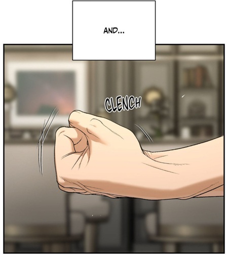 (chapter 89) The panel does not show Heesung speaking again; it shows Joo Jaekyung’s clenched fist, isolated, rigid, suspended in recollection. This is not the fist of imminent action. It does not precede a strike. It does not convert pain into confrontation. Instead, it freezes.