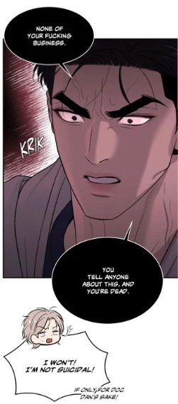 (chapter 34) — a clear sign of excitement, not fear. And still, his heart remains silent. This raises the question. Why was the actor not afraid of the MMA fighter? Because even if the words echo the previous threat, the perceived danger has changed. With doc Dan standing between them