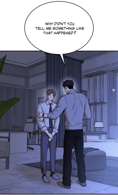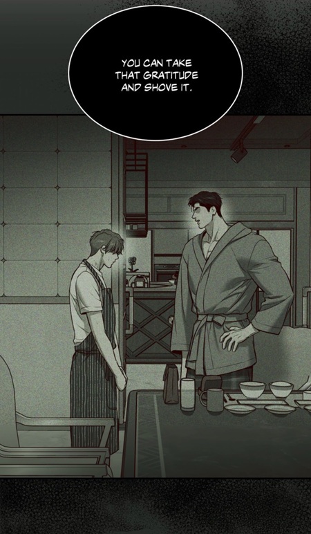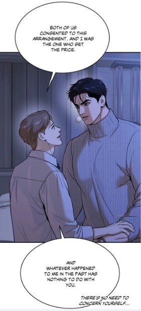 (chapter 18) The denial of kindness from the champion made the doctor uncomfortable, the latter felt the need to leave the penthouse as soon as possible. The lesson for the star was to realize that words are powerful and can affect people. But Joo Jaekyung didn’t grasp it, as he chose to use sex to „submit“ his fated partner.