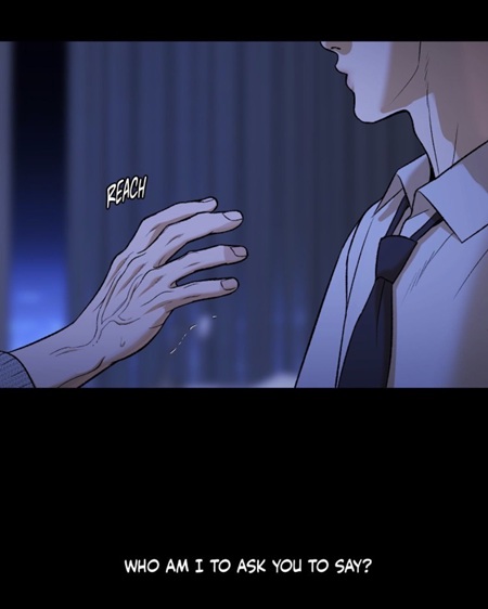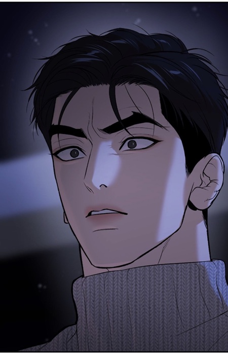 (chapter 90) He is not physically lowered, cornered, or framed from above. His body remains upright, broad, and imposing. From the outside, he still appears strong, yet deep down, he is falling apart. The withdrawal of the hand is not restraint, but surrender. A strong body remains standing while the will to fight quietly disappears.