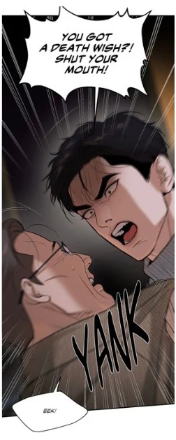 (chapter 34), we see the actor’s confidence gradually vanishing. His mask begins to crack. In that moment, he realizes that in the VIP spa his celebrity status offers no protection. No manager, no Park Namwook, no audience is present. He is utterly exposed to the raw force of the champion’s anger and fist — and the physical threat is real.