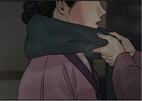 (chapter 69) He is not just affected by the main lead’s appearance, but also by his gestures. Baek Na-Kyum is finally able to see the kindness in Yoon Seungho. First, he did keep his promise to the artist. He restrained himself to punish the kisaeng. Secondly, he put himself the scarf around the low-born’s neck, which is quite extraordinary. The manhwaphiles shouldn’t forget that Yoon Seungho is actually lowering himself by acting so, he prioritizes the commoner. This is not surprising that at the end, Baek Na-Kyum can’t help himself blushing.