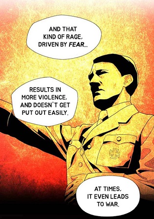 (Chapter 86) No one close to him had grabbed his hand in order to show their support. This gesture in the picture embodies abandonment. On the other hand, the painter had been the first one to take his hand and to swear “loyalty“.