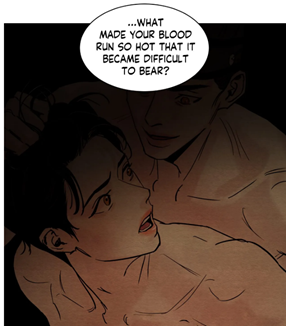 (Chapter 39) Once again, the lord had a teasing attitude, yet he was gentle and considerate. This is not surprising that due to their interaction, Baek Na-Kyum started listening to the lord. He took his questions and advices very seriously (chapter 40). Thus he confronted the learned sir about his future. As the painterofthenightphiles can detect, by communicating they began trusting each other more, and as such showing more curiosity and understanding to their counterpart.