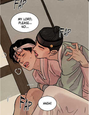(Chapter 79) Hence people saw the sex session in the shed as rape. Nonetheless, the manhwaphiles shouldn’t forget that Baek Na-Kyum was living in the mansion as a servant. Hence according to Joseon’s social norms, he was in no position to reject the main lead. However, for Yoon Seungho, it was different, for he was a young master. He had a title that was supposed to protect him. Consequently, the main lead can reproach the mysterious lord Song that he never asked for his consent and he would even treat him like a male kisaeng!