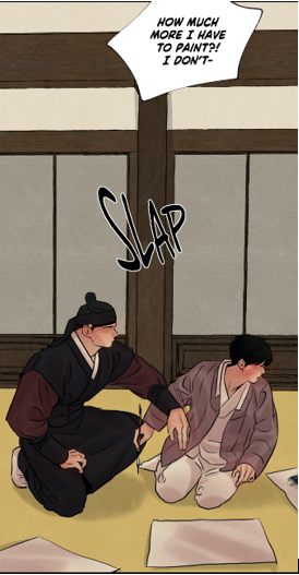 (chapter 67). Therefore, the artist will leave the bedchamber in a rush, he wants to protect her from Yoon Seungho’s wrath. Let’s not forget that before the first desertion, the artist protected the scholar: