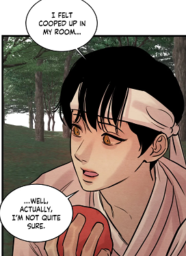 (chapter 78) The manhwaphiles can sense that the painter was slowly transforming, he was maturing. He wanted to become responsible for Yoon Seungho too. He needed to pay attention to his fortune and position. In other words, the artist felt that their time spent together was like a paradise and they should go back to reality. That’s the reason why I came to the idea of the expulsion of the Garden of Eden.