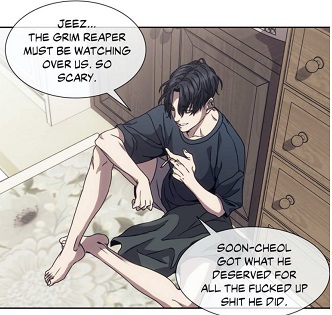In reality, he is describing his own thoughts. In other words, he is projecting his own thoughts into the protagonist. He explains his desire and obsession with witchcraft, because he feels vulnerable. That’s his way to confess his love in my opinion. Just like Kang Moo, he can’t say these words (“I love you”), as he has no idea what he feels and what love is. With this interpretation, it becomes comprehensible why Min suggested the painter’s murder in the end. If he can’t satisfy his urges (taste the painter) and he is still thinking about it, then he needs to get rid of the source of his obsession. Because the moment the painter disappears, Min will be able to move on. Witnessing Yoon Seungho’s pain will compensate him for the loss. Therefore, the manhwaphiles can comprehend, why Min still associates Baek Na-Kyum to death. Deep down, he fears the painter, as he senses that the former represents a source of danger for him. He can become his weakness. And the best way to remove this is to manipulate Jihwa to commit the crime. I also think, Min had already detected that he couldn’t do it himself.