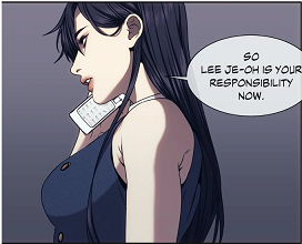 But let’s return our attention to the new guardian. How could they hire someone so quickly? The manhwalovers should remember that only Nameless knows about Deok-Jae’s disappearance and death, therefore he was well aware that Yoon Seungho’s staff might look for a replacement. Since the criminal no longer needs a spy to observe the red-haired master’s move, he needs to plant a spy in order to know if Baek Na-Kyum will remain silent or not.