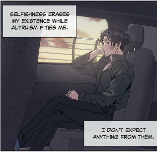 He got so jealous that the painter would embrace a vengeful ghost and even accept a slap without getting upset. Imagine, he saw how Baek Na-Kyum was willing to embrace the main lead with all his flaws: rage, brutality and his terrible reputation. Another reason for getting jealous!! At the same time, he felt the need to mock Yoon Seungho due to his jealousy and envy. He had to make him suffer, because he was “suffering” himself. And now, the readers can grasp why Min was even willing to risk his face. He couldn’t contain his negative emotions, he felt the need to provoke the “monster”… In reality, he was mocking himself. How could he feel captivated to the painter? I can even imagine that he accepted the punches, because these could serve as a wake up call. And now, you understand why Min felt the need to retaliate against Baek Na-Kyum and Yoon Seungho the next morning. He sensed that he needed more than before to remove the artist, as his desires for Baek Na-Kyum kept increasing, and as such his envy and jealousy had become insufferable. As you can observe, Min is a really complex character. To reduce him to a psychopath is not correct. Sure, it helps the readers to comprehend his personality better, however by analyzing another psychopath, we could definitely perceive his true thoughts and emotions.