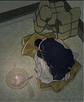 (chapter 57) The protagonist had lost his sanity and there’s no doubt that the king didn’t want to be confronted with his own wrongdoings. In the first version of this essay, I had assumed due to Yoon Seungho’s behavior, that the latter had been sexually abused by his father. This theory was developed based on previous observations, like for example, Jung In-Hun, as a new version of father Yoon and the painter’s surrogate father, seemed to be a pedophile due to his strange behavior in chapter 29.