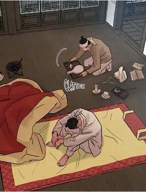 Hence the eldest master Yoon had to diminish his son’s good reputation by describing him as ill. However, if I hold this theory, the nature of the king’s jealousy gets a different signification. He decided to held the teenager captive in the palace, so that the son would stop attracting attention from other men. That’s why no one knows their special relationship. As for father Yoon, the house arrest was justified with the excuse of illness, because he couldn’t stand the idea that his son’s notoriety was better than his own. However, when the first rape occurred in the shed, the eldest master Yoon saw an occasion to use his eldest son in a better way: a prostitute. The manhwaphiles should keep in their mind that the learned sir witnessed the artist’s rape. This means that father Yoon must have been aware of the king’s preferences. For him, it looked like the perfect solution. He didn’t need to do anything, yet he would get benefit from this exchange of favors. Through Yoon Seungho, he could get more power and influence thanks to the monarch’s support. One might argue that the father hates sodomy, hence he can’t have sold his son to the king. In chapter 1, we hear from the painter that father Yoon cut off his son’s topknot in public because of sodomy.
