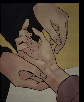 However, what the readers shouldn’t forget is that the master’s behavior is actually unveiling his own past and mirroring his past traumatic experiences. The main lead is acting the way he was taught, or even I would even say, the way he experienced it himself. There’s no doubt that he is replicating father Yoon’s gestures. The first evidence for this deduction is the way he grabs the artist’s neck in chapter 62.