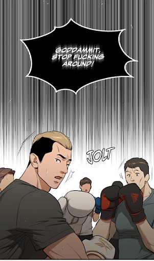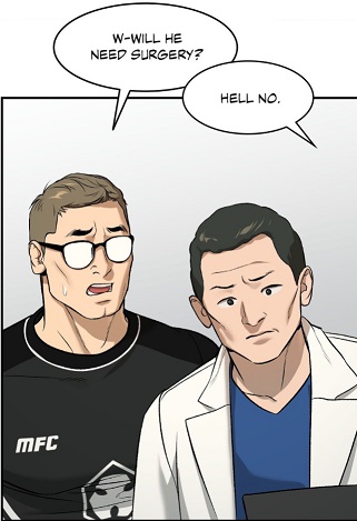 (chapter 78) Standing in the back, Namwook watches as Dan returns and is embraced by the fighters. He notices a “different vibe” between the two leads, but fails to grasp what it means. Doc Dan is actually free and has the upper hand in their relationship. Hence he can no longer ask this from doc Dan: