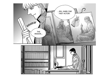 Now, people who haven’t read “A painter behind the curtain” might think that Yoon Seungho is the Joseon version of Bardi, however they are wrong. Actually, he is a mixture of Bardi (due to his selfish and violent side) and Mr. Raymond. If you look at the image where Mr. Raymond is looking at the painting, you’ll notice his fascination and admiration for the work created by Ian.